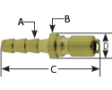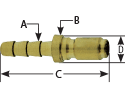 SERIES M ,1/8" BODY SIZE X 1/4" HOSE BARB,UNVALVED, BRASS,